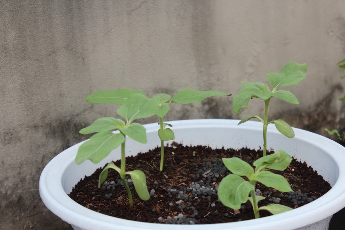 B6: Chế độ chăm sóc: Do đất trộn như trên là khá tốt nên nếu trồng lần đầu và lần thứ 2 bạn có thể không cần phải bón phân cây vẫn phát triển tốt. Còn nếu thích thì bạn vẫn có thể bón cho em nó ít NPK. Chế độ tưới tắm thì mình nghĩ khi cây đã từ khoảng 20 cm trở lên là bạn có thể tưới đẫm, đến khi nào thấy đất khô lại tưới tiếp. Tránh tưới nhiều quá cây sẽ bị chết. Và thực tế khi em nó đã trưởng thành thì bạn muốn em nó không chết thì ngày phải tưới cho em nó … vài lần (Do lá hướng dương to nên tỉ lệ thoát nước qua lá là rất lớn => Nhu cầu nước của em nó cực cao, đặc biệt là những ngày nắng).