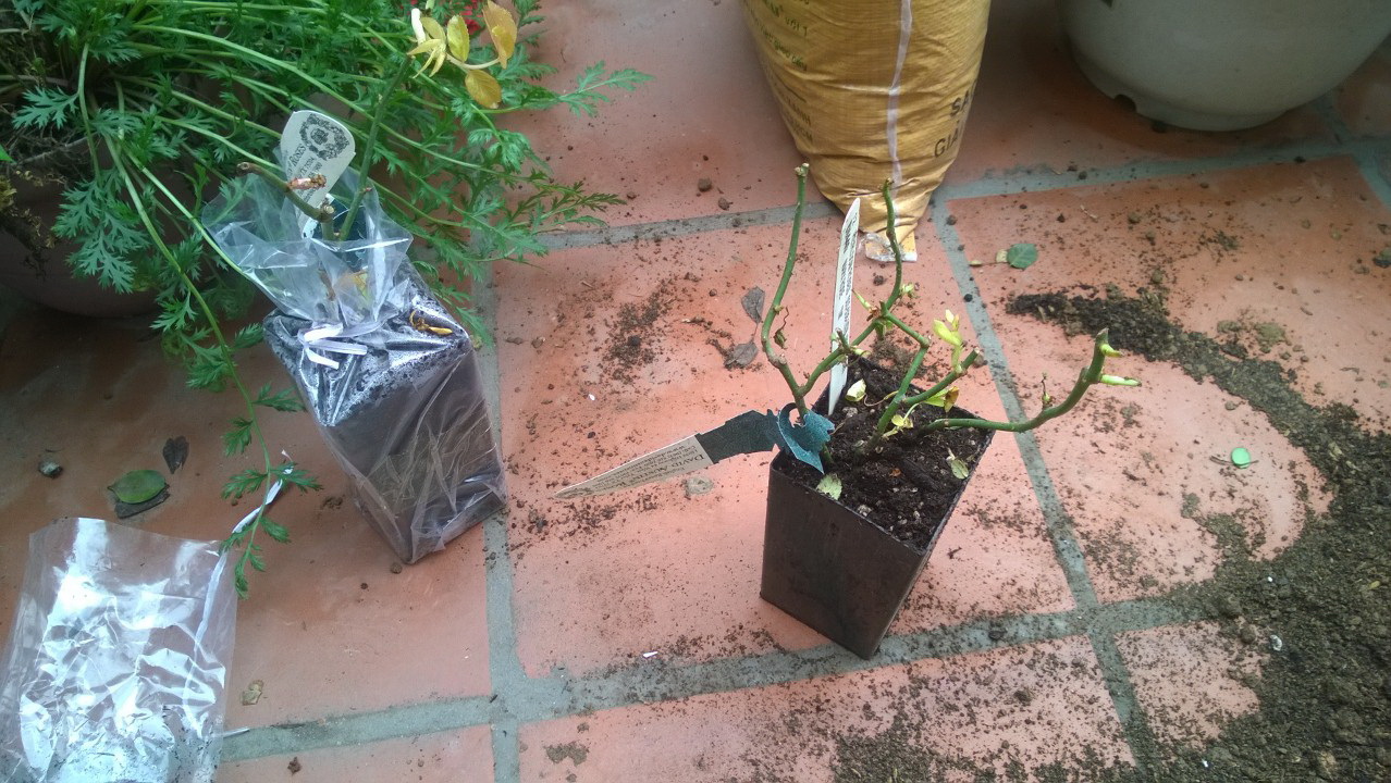 Mất hơn một tuần tìm tòi, so sánh, đánh giá… tôi cũng lựa chọn được cho mình 7 cây hồng Band size của Heirloom. Sau khi đặt, chuyển tiền, chờ đợi thì tôi cũng đã nhận được những cây hồng tôi mong muốn (Tôi nhận làm 2 đợt, đợt 1 là 5 cây vào ngày 20/02/2014, đợt 2 là 2 cây vào ngày 15/03/2014, như vậy là mỗi đợt cách nhau gần chẵn 1 tháng). Thú thực là khi mua, tôi có tham khảo ảnh và định nghĩa trên web về thể loại hồng band size này nhưng khi được cầm tận tay những chậu hồng, tôi cũng cảm thấy bất ngờ và có đôi chút hụt hẫng vì chúng quá… nhỏ, nhiều cây chỉ có 1 cành mà cành thì bé như que tăm vậy.